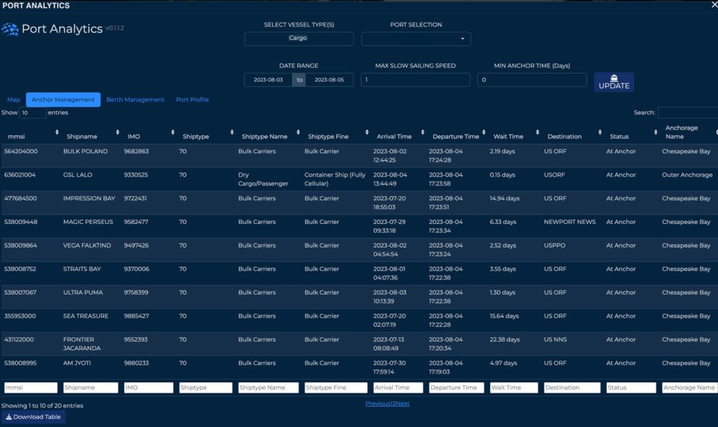 - Single window into current wait times and traffic conditions at various ports for shipping lines, terminal operators, ports and pilotages