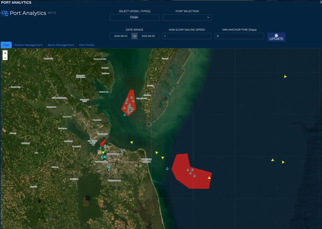 - Real-time and historical comparison between current and previous time periods within a port and between competitor ports: analysis and insights such as anchorage queue, occupied berths, and anticipated wait times